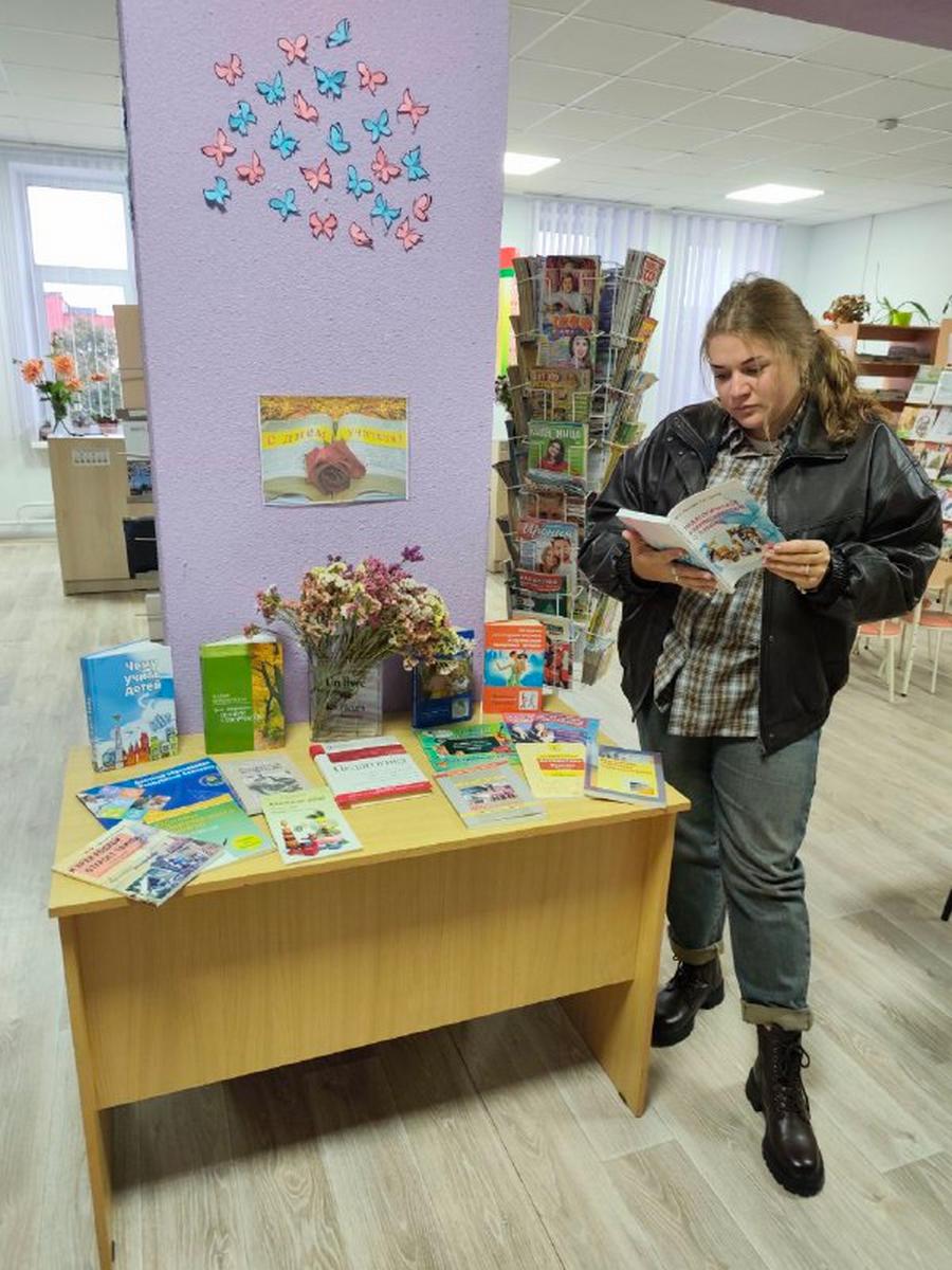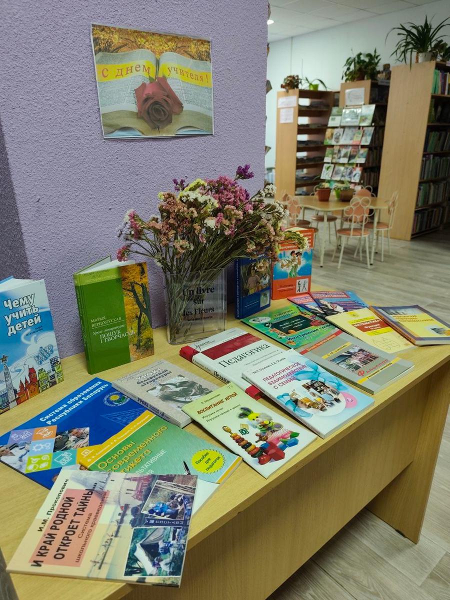 Книжная выставка “С днём учителя!”, организованная в Жемчужненской библиотеке